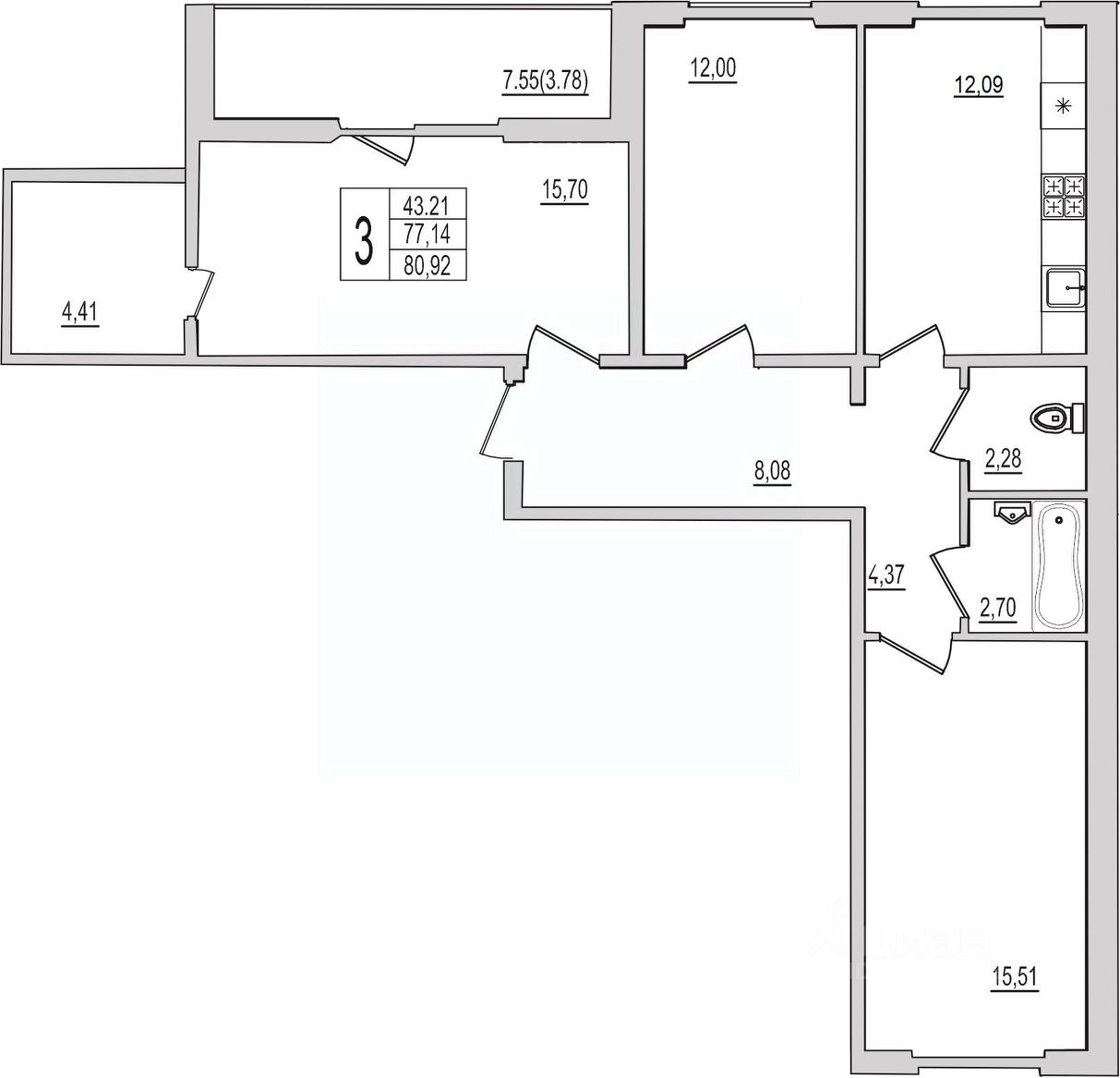 77 м² · Этаж 3 из 16
