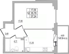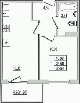 Продаётся 1-комнатная квартира в строящемся доме (Дом 32 (2 этап)), срок сдачи: III-кв. 2026, общей площадью 36.82 кв.м., на 4 этаже. Строительство многоквартирных жилых домов на улице Юности.