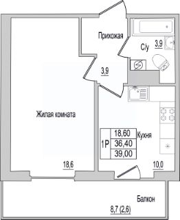 39 м2