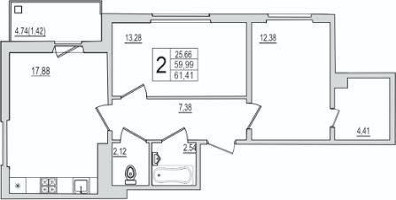 2-к, Юности, 32 Показать на карте