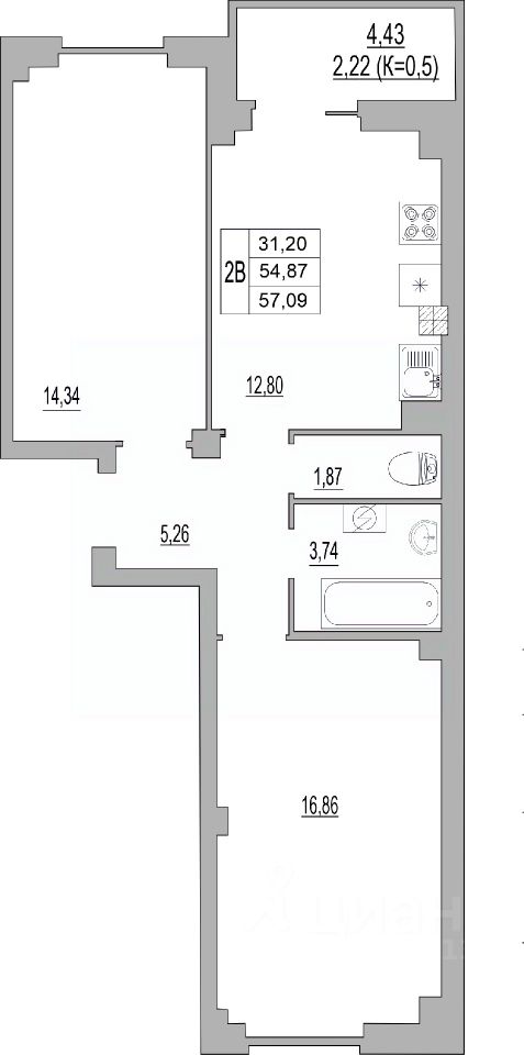 57 м² · Этаж 8 из 9