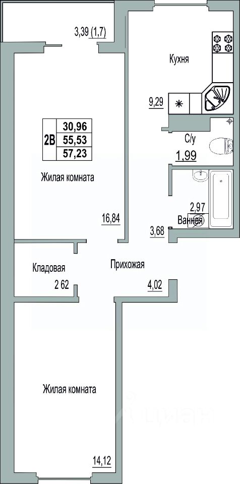 57 м² · Этаж 9 из 9