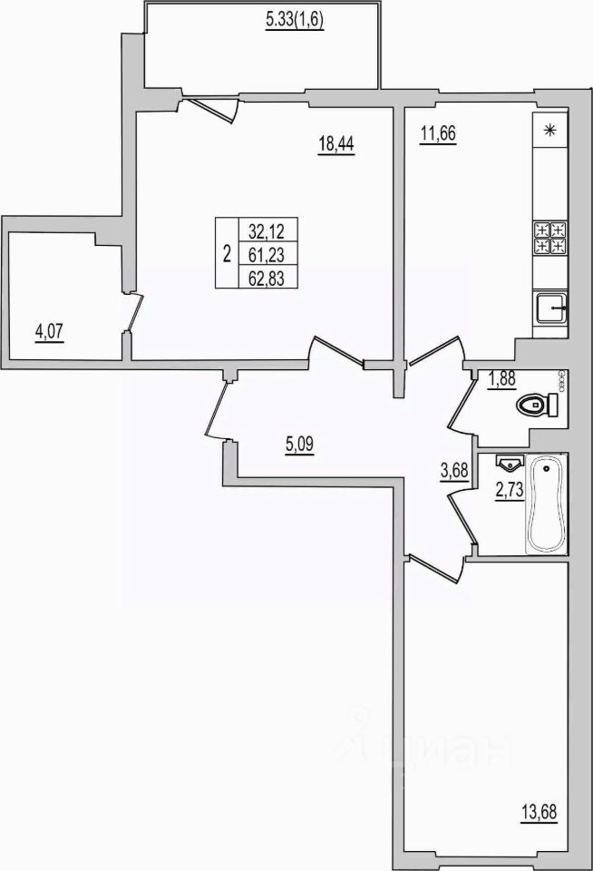 62 м² · Этаж 2 из 10