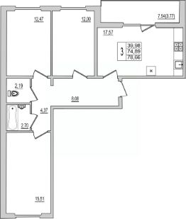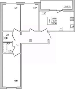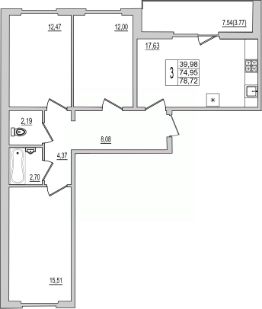 Продаётся 3-комнатная квартира в строящемся доме (Дом 94Д), срок сдачи: III-кв. 2027, общей площадью 83.71 кв.м., на 2 этаже. Новый жилой комплекс ''Семь сезонов'' от застройщика ''ЛУГ''