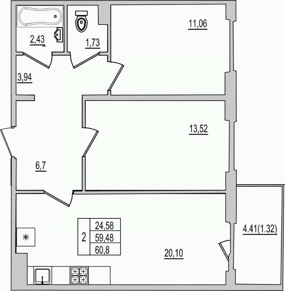 60 м² · Этаж 10 из 10