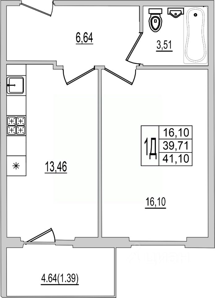 41 м² · Этаж 6 из 10