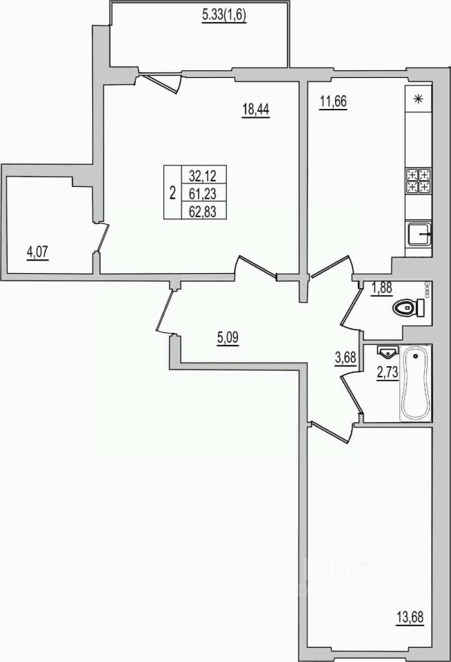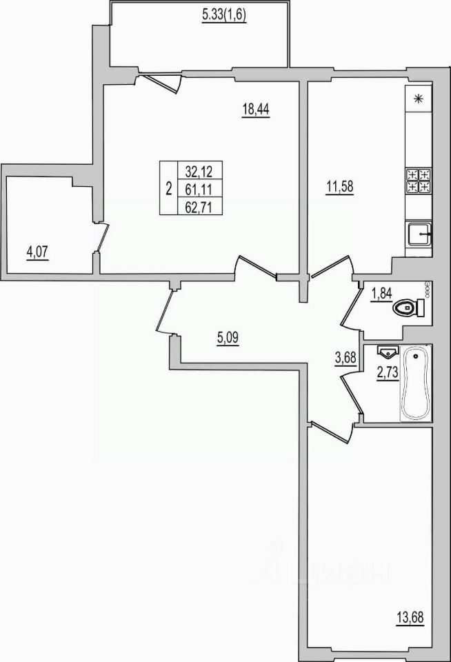 57 м² · Этаж 2 из 9
