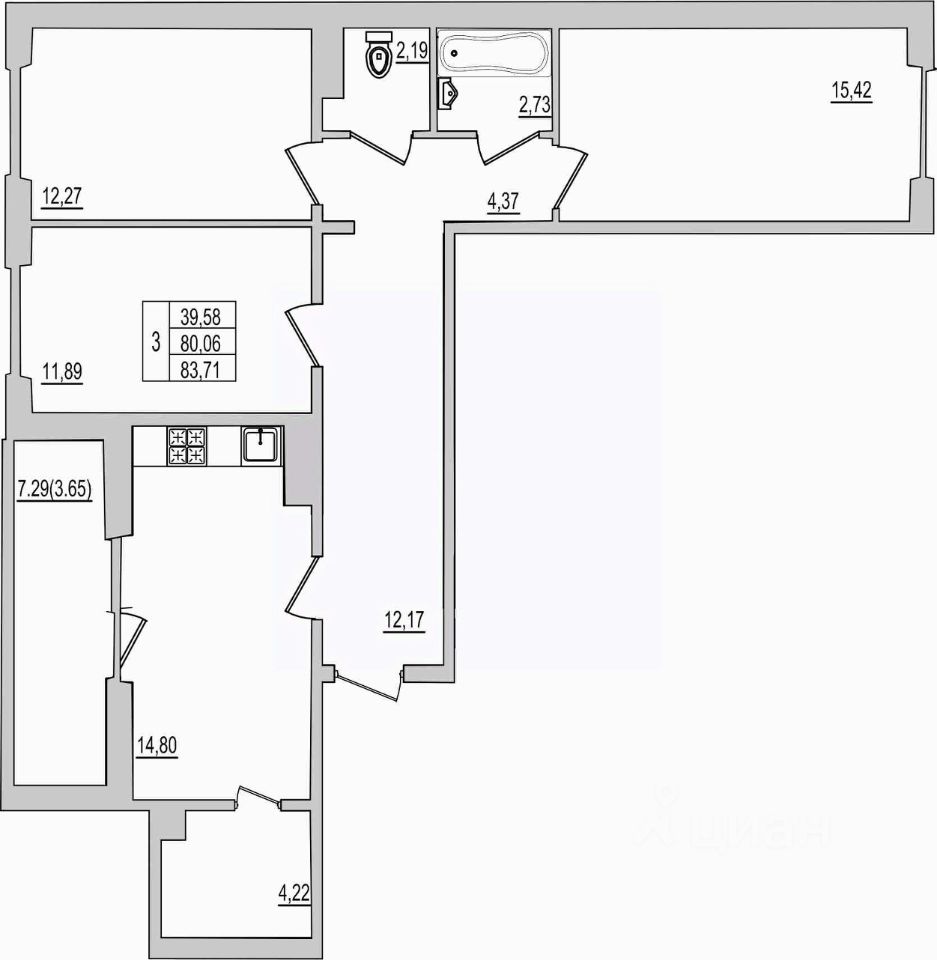 Продаётся 3-комнатная квартира в строящемся доме (Дом 94Д), срок сдачи: III-кв. 2027, общей площадью 83.71 кв.м., на 3 этаже. Новый жилой комплекс ''Семь сезонов'' от застройщика ''ЛУГ''
