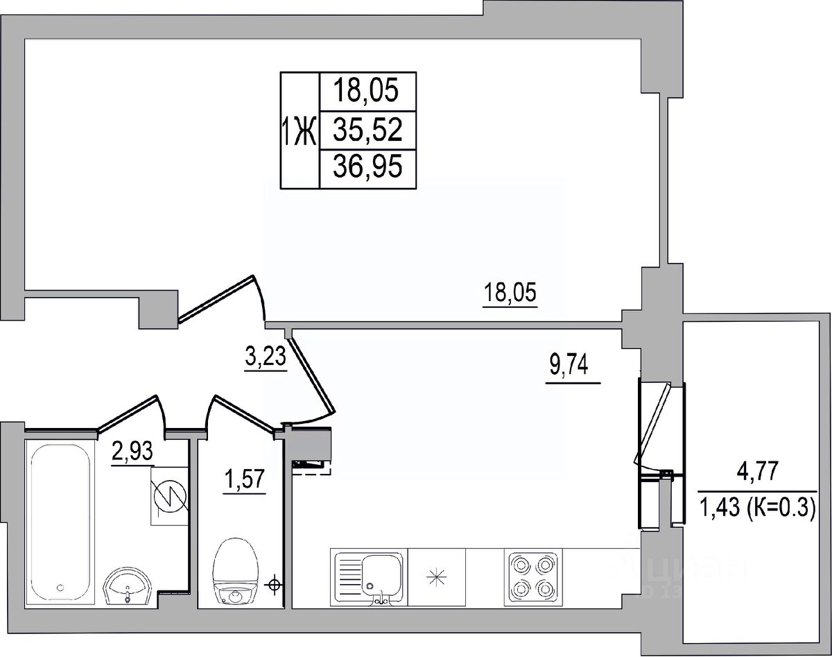 36 м² · Этаж 9 из 10