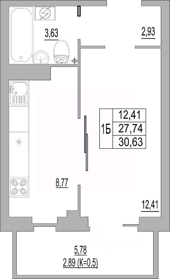 1-к, Юности, 32