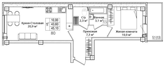 • Минимальная площадь: 17 м²