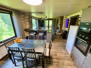 Современный бревенчатый расположен на первой линии озера в сосновом лесу! Круглогодичный подъезд, уединенное место (на краю деревни), хорошие тихие соседи. Рядом, 1,5 км, продуктовый магазин, автостанция, администрация волости, мед пункт, 15 Монина машине до Чудского озера. В пешеходной доступности ещё несколько озёр и река Желча! Дом для круглогодичного проживания, 2024 г.п площадью 154,5 кв.м, срублен из зимнего леса 25-35 см, грамотно запечатан по технологии, что исключает гниение венцов. Ленточный фундамент, гидроизоляция, отмостка, водоотведение, кровля -металлочерепица, двойные стеклопакеты, подведено 60кВт электричества, зимний водопровод из собственного колодца, канализация -септик. Внутри все сделано для комфортного отдыха: первый этаж: прихожая, с/у, спальня и просторная кухня-гостиная а печью-камином. Кухня оборудована современной бытовой и встроенной техникой, мебелью и освещением, а панорамные окна создают неповторимую атмосферу уюта. На втором этаже большая мастер спальня, гостевая комната и просторный застекленный балкон с видом на озеро, теннисным столом и уютным уголком для вечерних посиделок. Все общие пространства оснащены элементами декора и дополнительным светом, особенно эффектно смотрится лестница! На крытой террасе перед домом - южная сторонка с видом на озеро, расположены качели и ещё одна зона отдыха! Участок площадью 28,46 соток, светлый, сухой, ровный, огорожен забором. Выход прямо к пирсу на озере! Из дополнительных построек: гриль зона, навес для дров и техники, рубленное помещение которое можно использовать по своему усмотрению, от технического до жилого. Важно!!! В доме останься не только обстановка но и вся техника для отдыха и ухода за участком: газонокосилка, лодка, инструмент и тд. Документы полностью готовы к продаже: собственность, межевание. Таких объектов практически нет в районе и он точно достоин внимания! Звоните, уточняйте подробности!