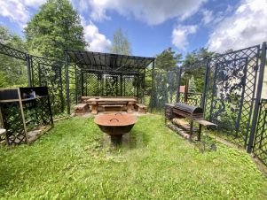 Дом бревенчатый, обложен кирпичом. Установлены пластиковые окна с двухкамерным стеклопакетом, есть водопровод и душевая кабина. На участке есть гараж, летний домик, беседка, баня.