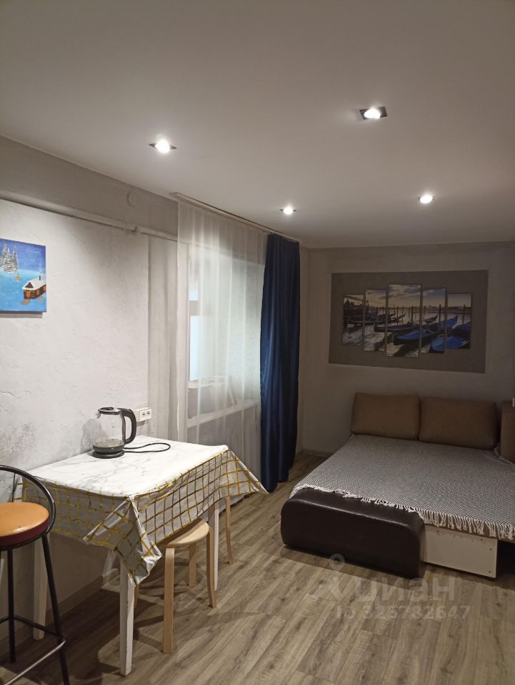 Квартира студия 32м2, совмещенный с/у, стиральная машина, холодильник, микроволновая печь, телевизор, кровать, диван - есть все необходимое.