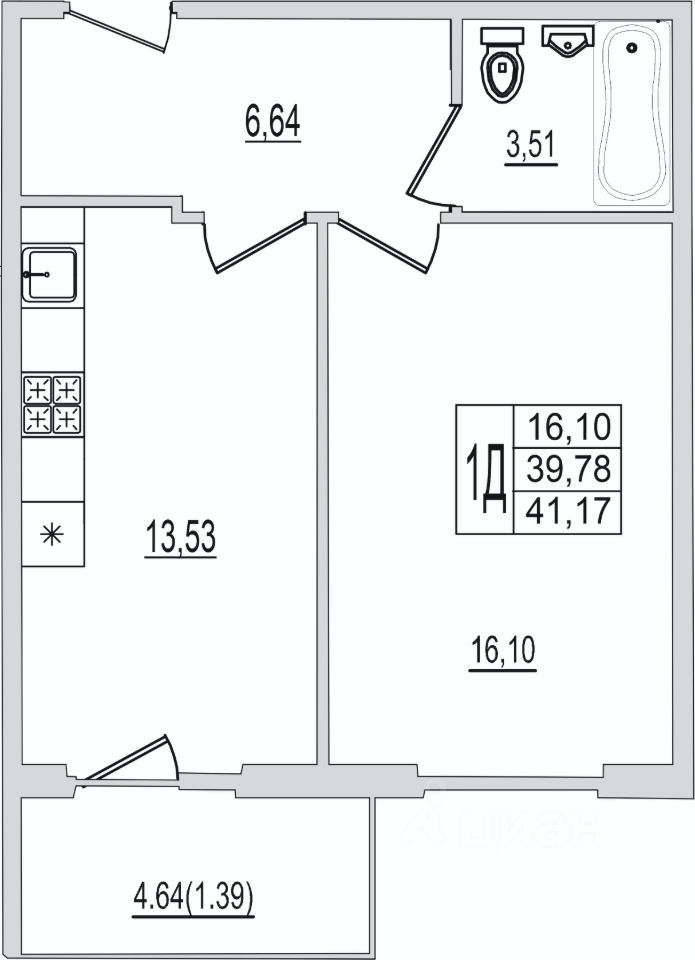 продам 1-к, Рижский проспект, 94г3 841 810 ₽