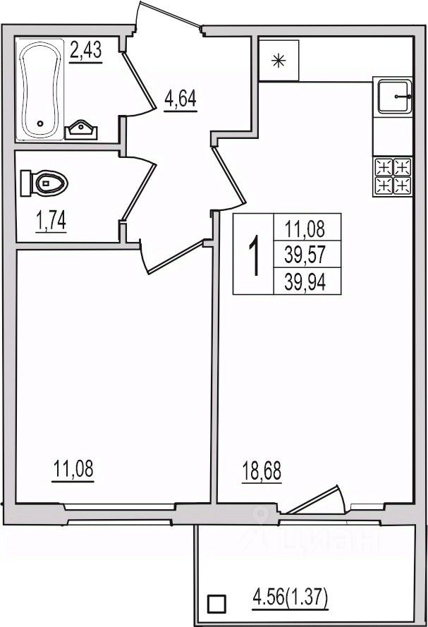 продам 1-к, Рижский проспект, 94г3 714 420 ₽