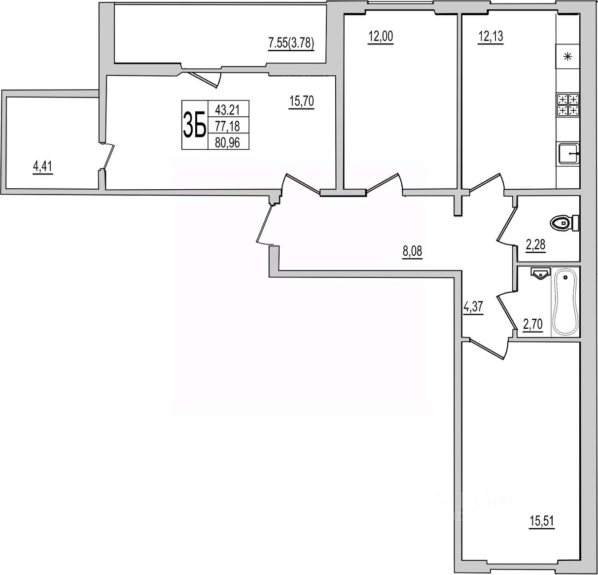 Продается 3-комнатная квартира 78 в строящемся доме на Рижском проспекте.