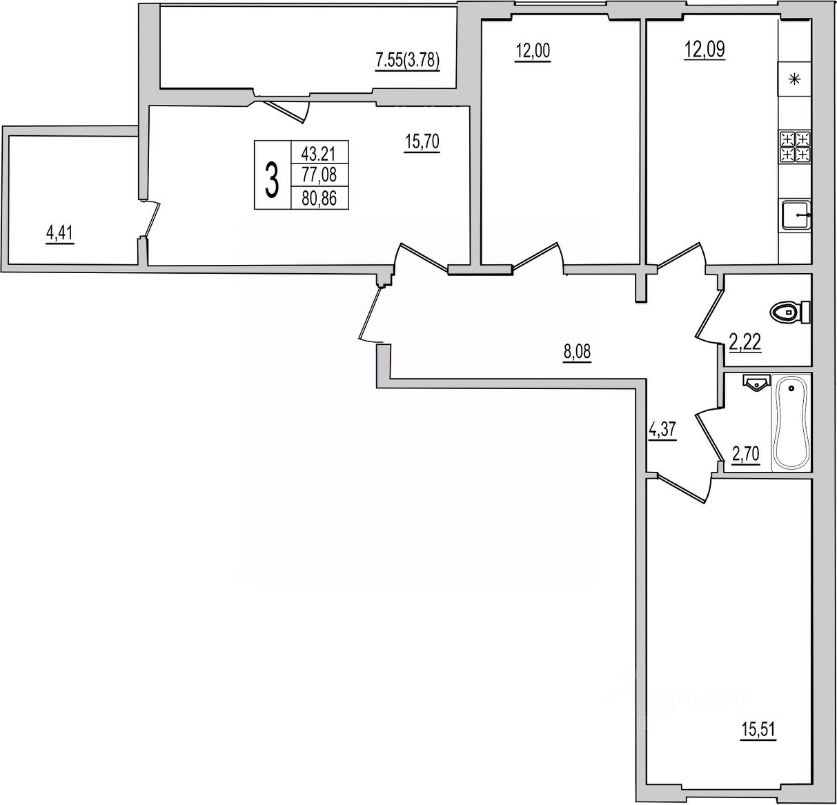 продам 3-к, Рижский проспект, 94г7 843 420 ₽
