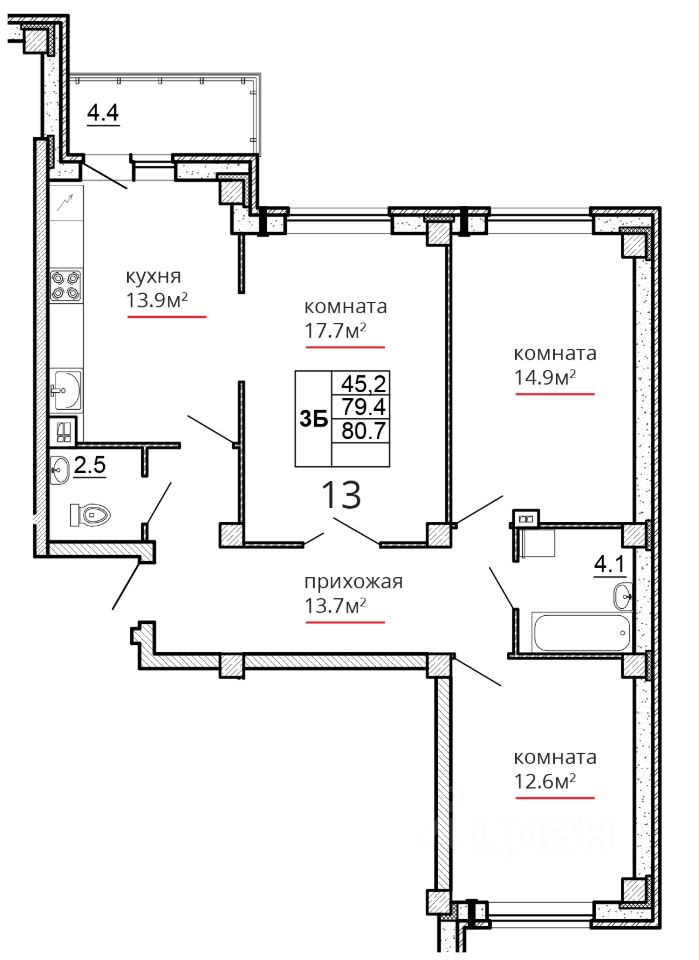 Общая площадь80,7 м2