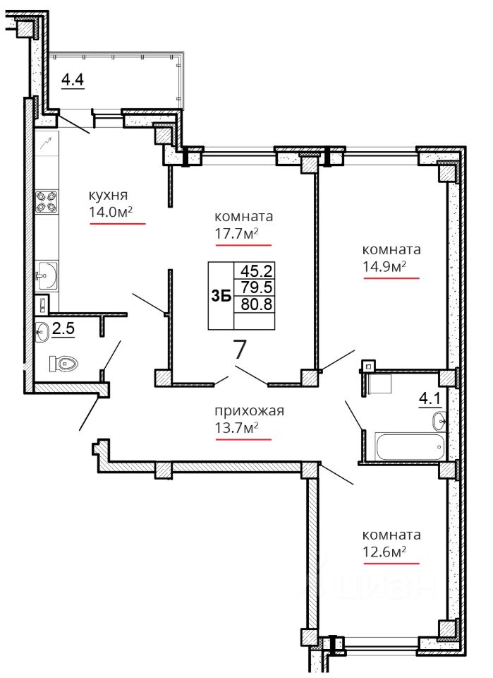 Общая площадь80,8 м2