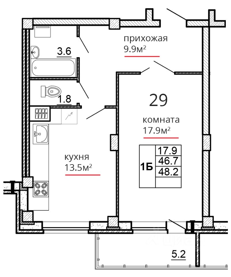 Общая площадь48,2 м2