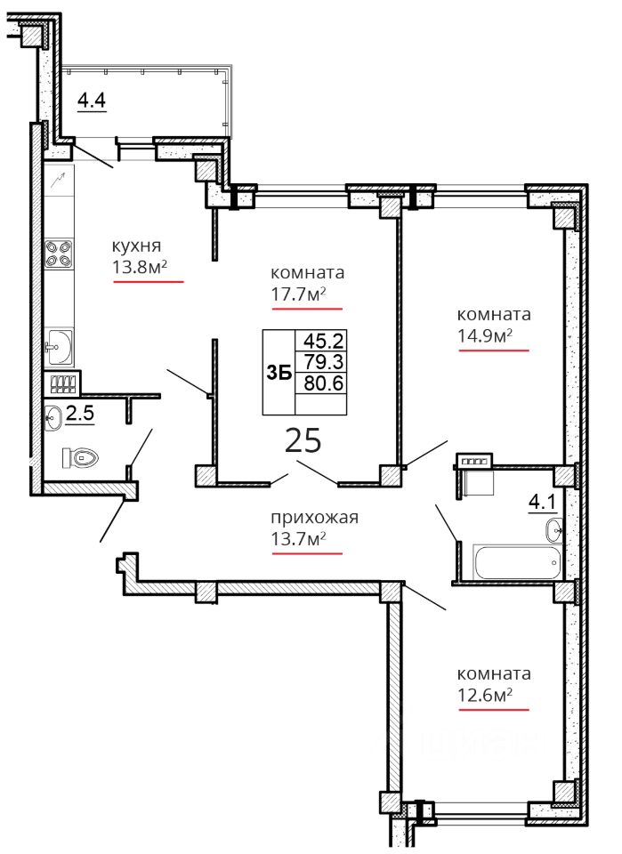 Общая площадь80,6 м2
