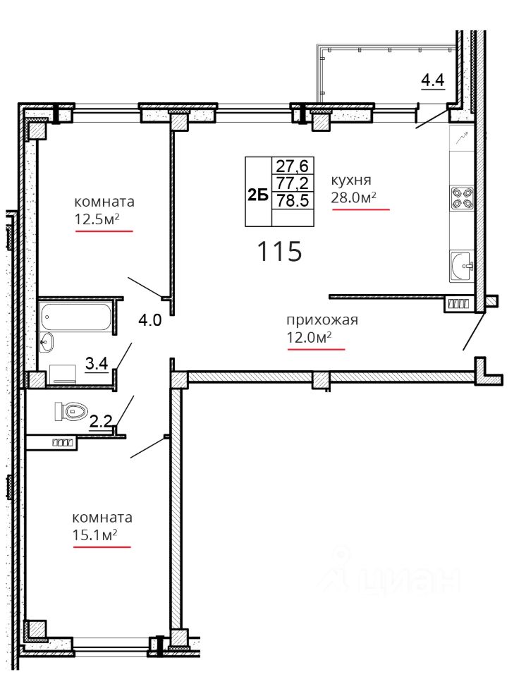 Общая площадь78,5 м2