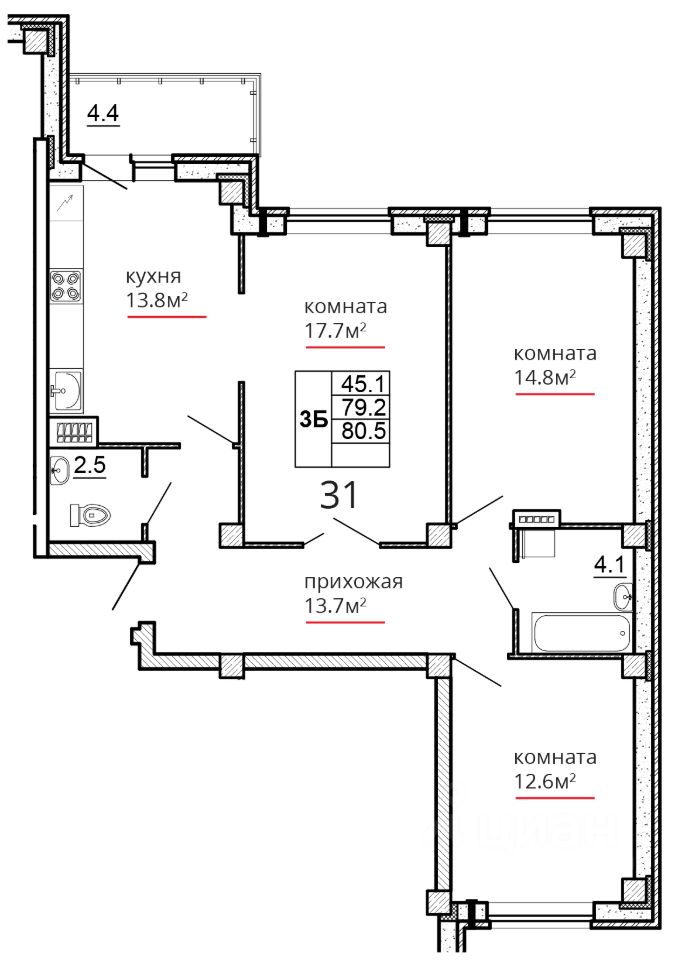 Общая площадь80,5 м2
