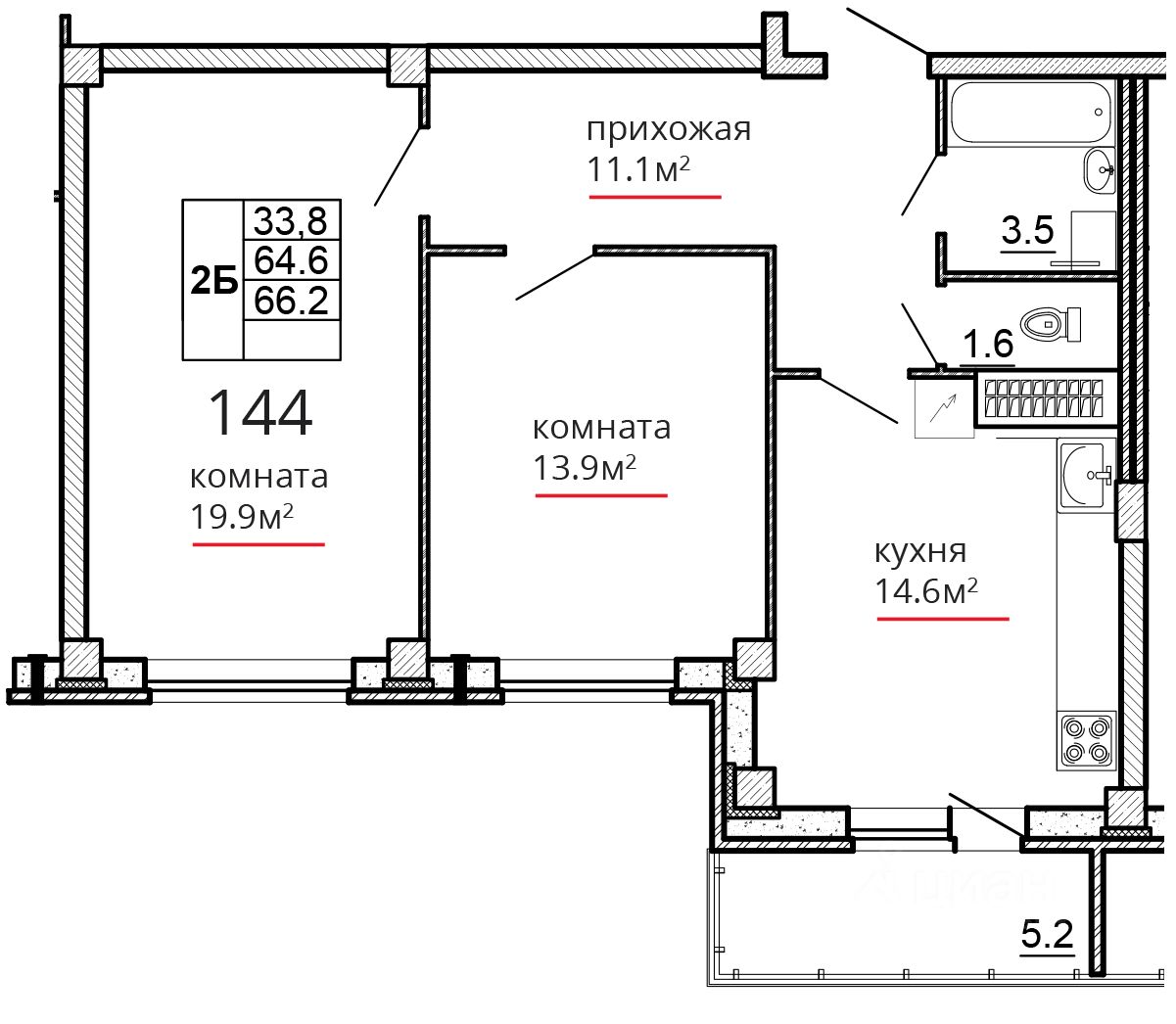Общая площадь66,2 м2