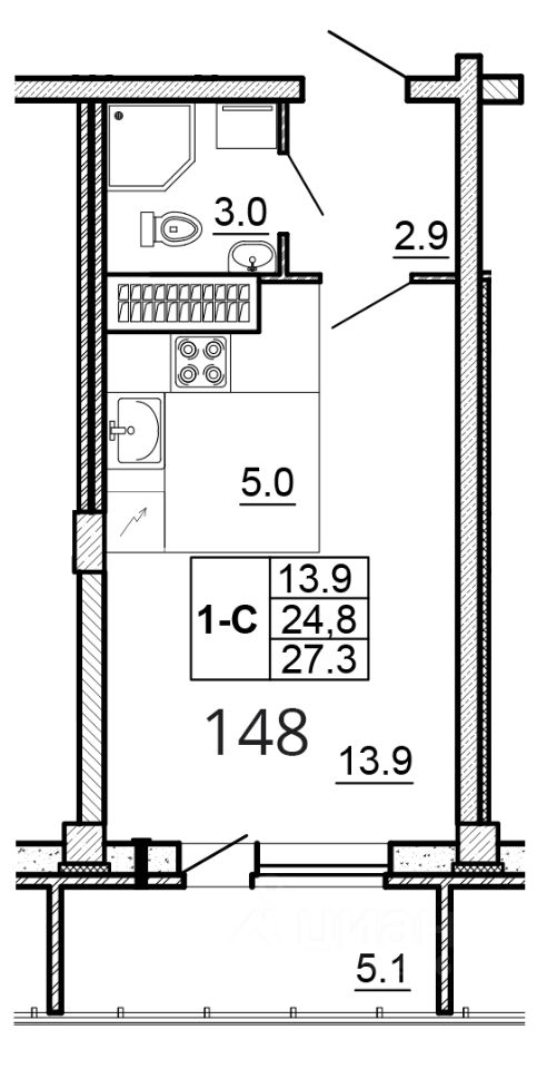 Общая площадь27,3 м2