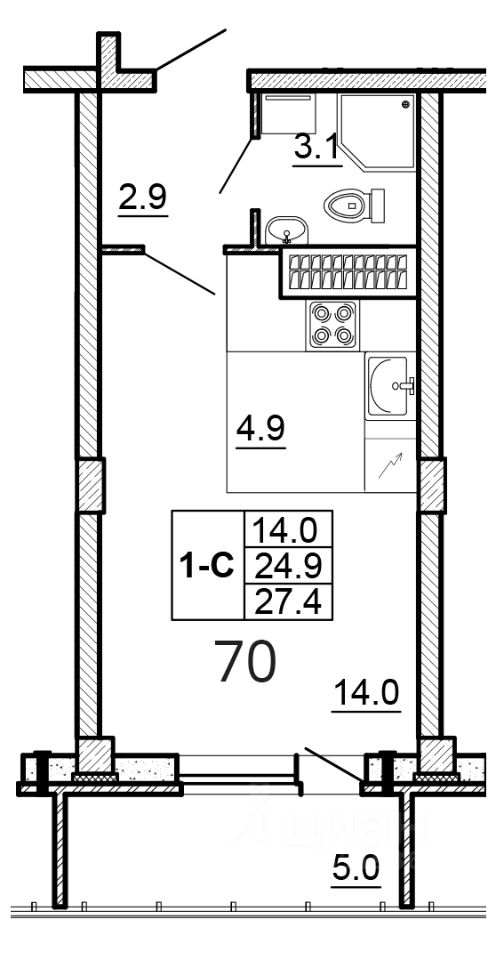 Общая площадь27,4 м2