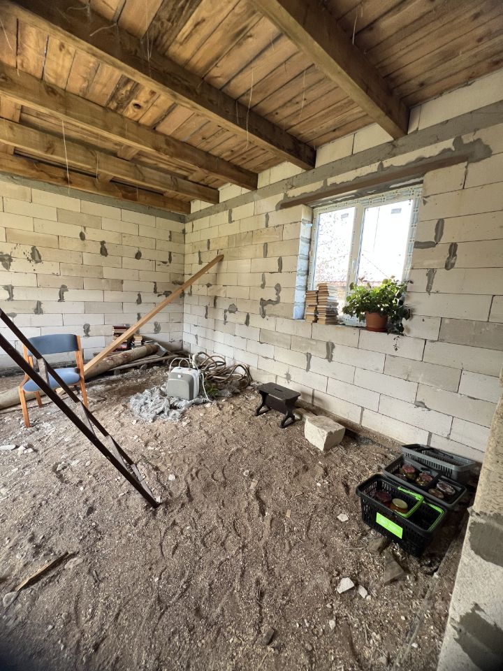 Продается недостроенный дом в д. Лычёво (район Механического завода). Фундамент ленточный буронабивной, размер 6 на 9. Пеноблок на 300 мм. В доме планировали: на первом этаже прихожая, с/у, бойлерная, кухня гостиная. На втором этаже две спальни.
