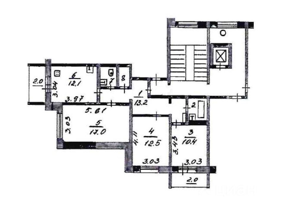 Продам 3 к. квартиру, 6 этаж, Рижский 95, нестандартная планировка, 2 лоджии застеклены, кухня 12.1 кв.м., изолированные комнаты: 17.0+12.5+10.4 кв.м., кладовая, квартира требует ремонта.