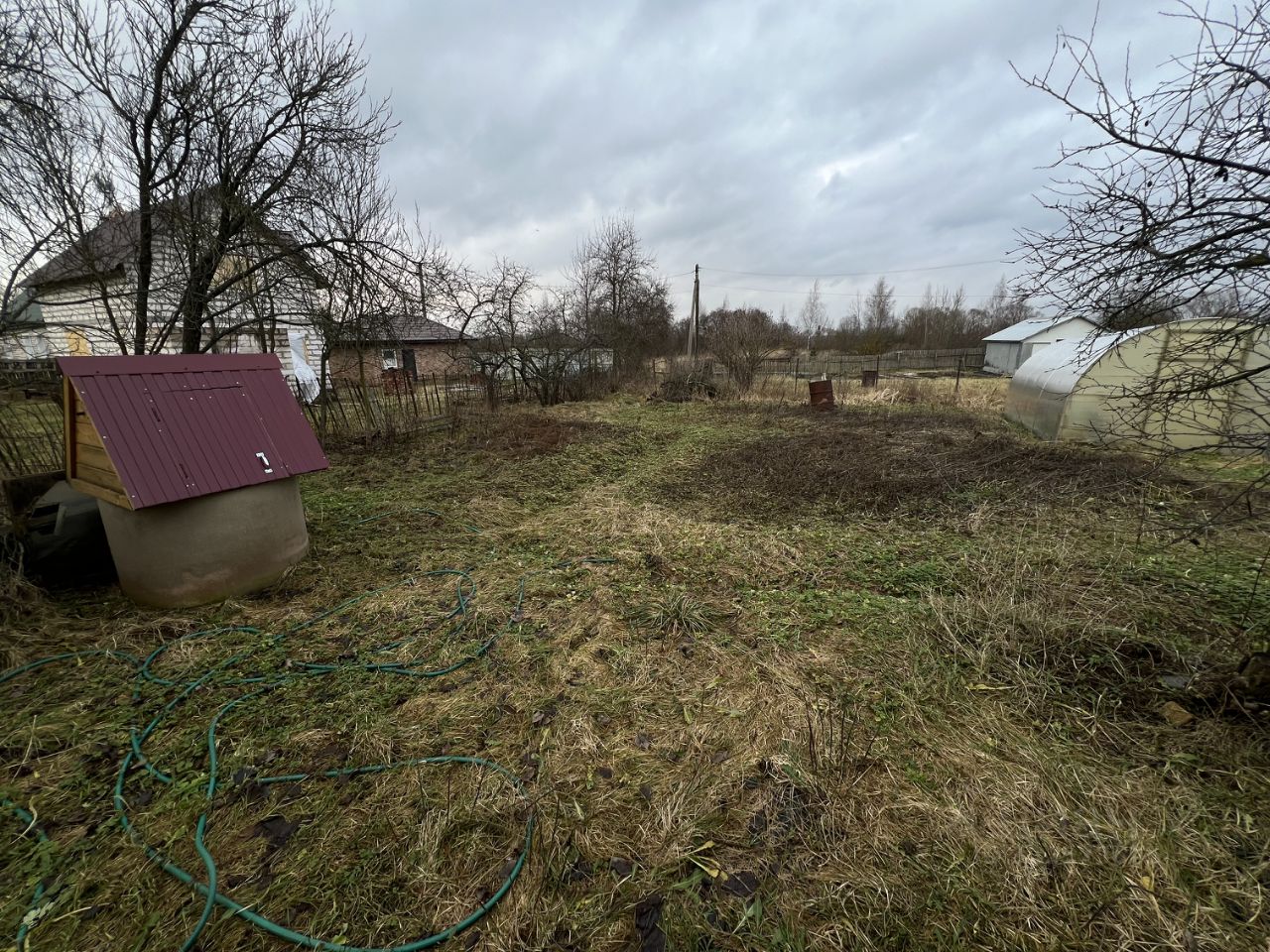 Участок 9 соток, огорожен забором, имеются различные дворовые постройки, баня, колодец.