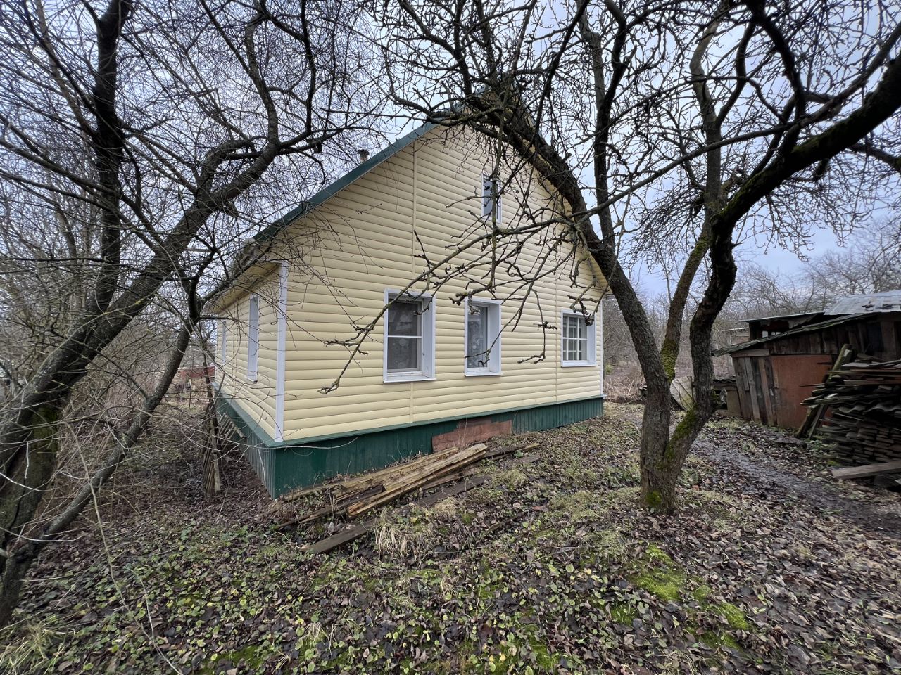 Продается дом, практически в городской черте, бревенчатый, обшит сайдингом, две комнаты и кухня, печное отопление, вода в доме из колодца, станция.