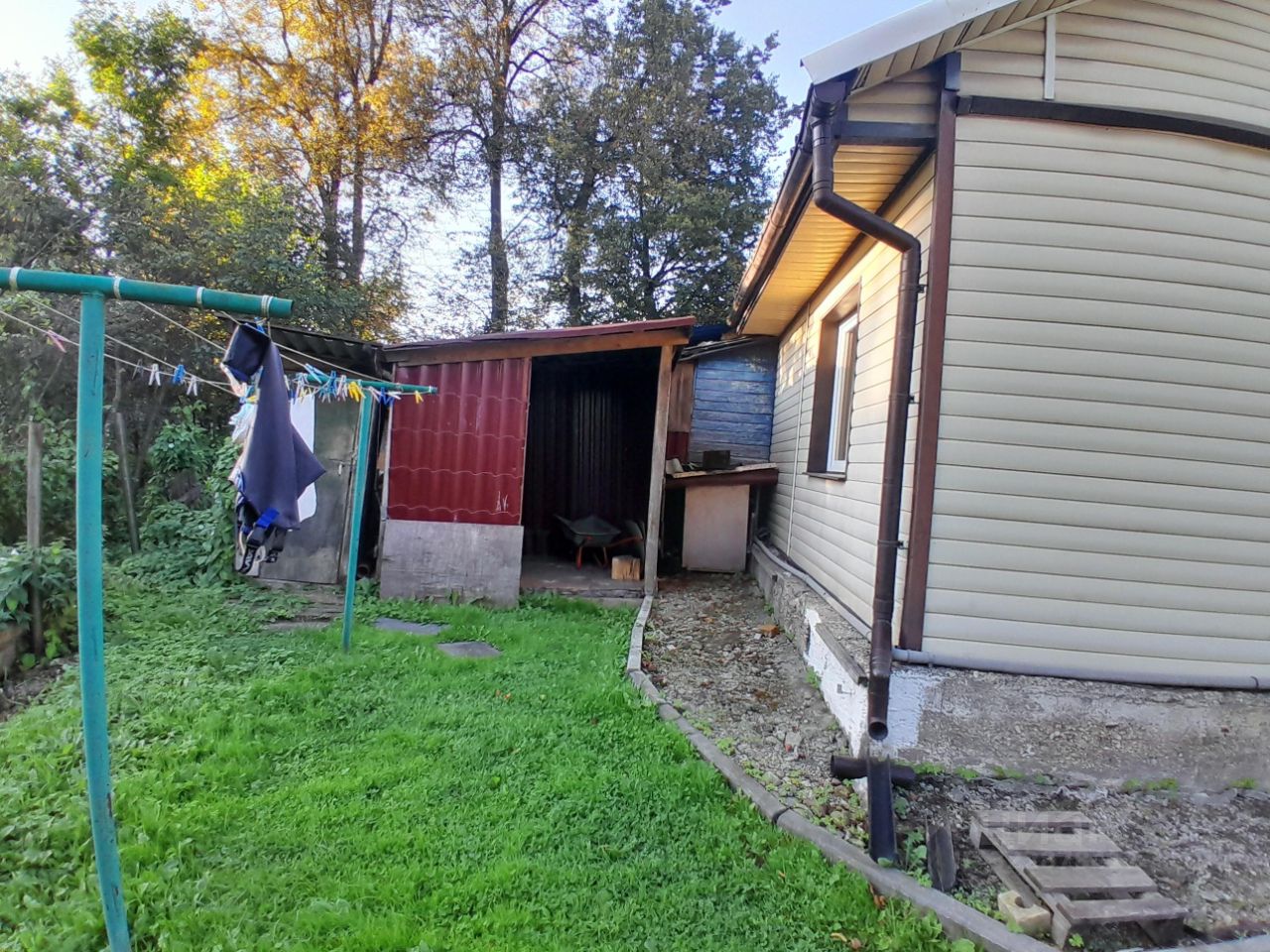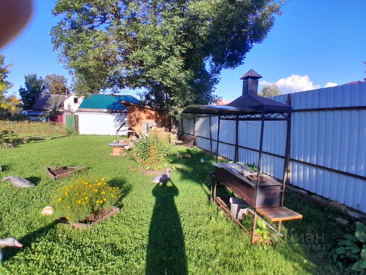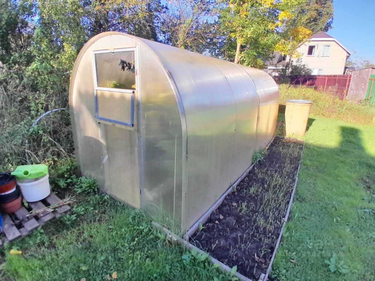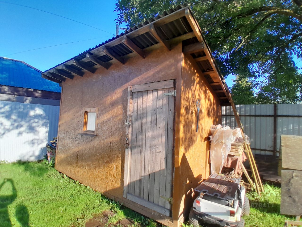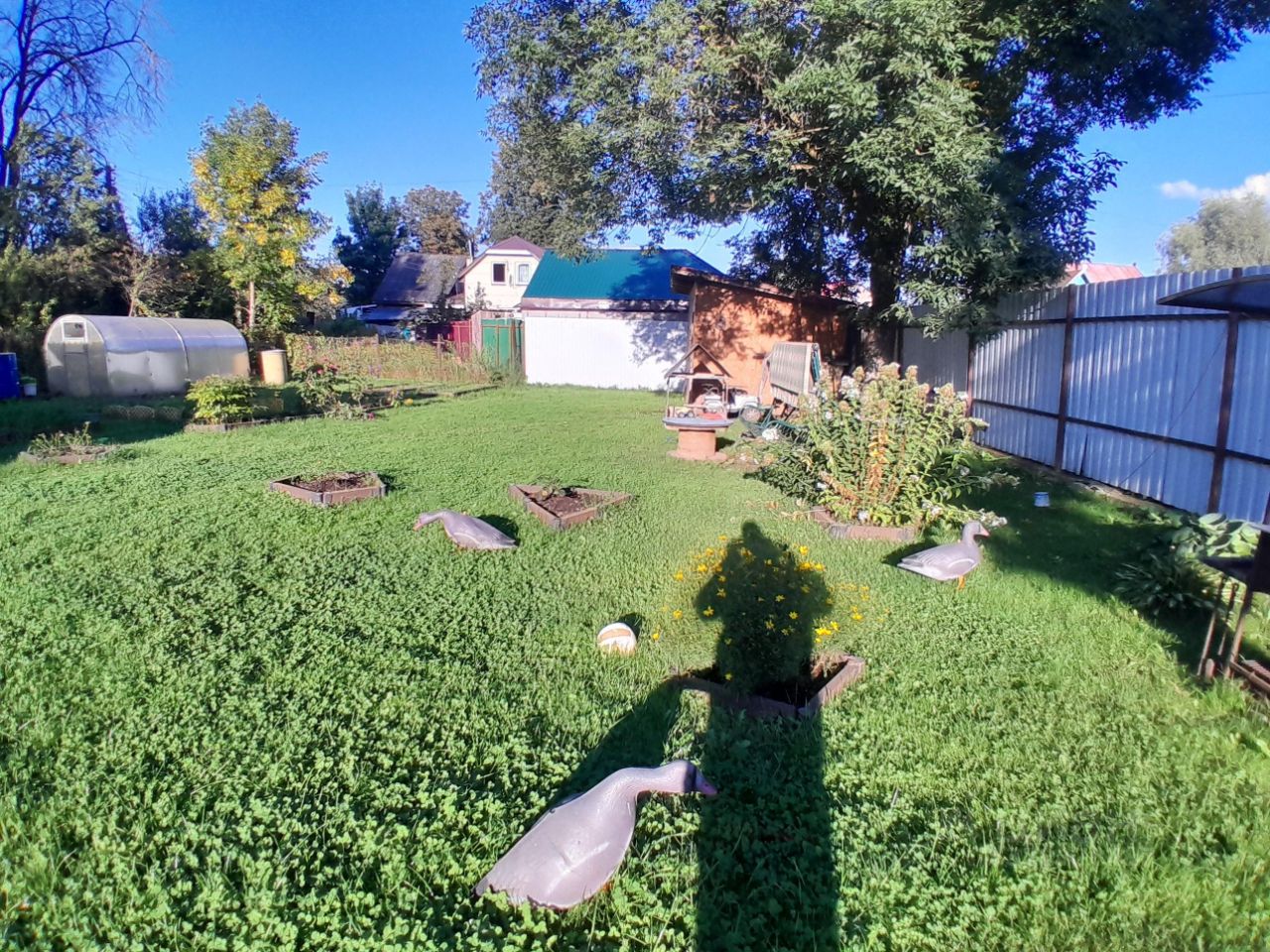 на участке расположены два сарая , теплица, грядки и мангальная зона.