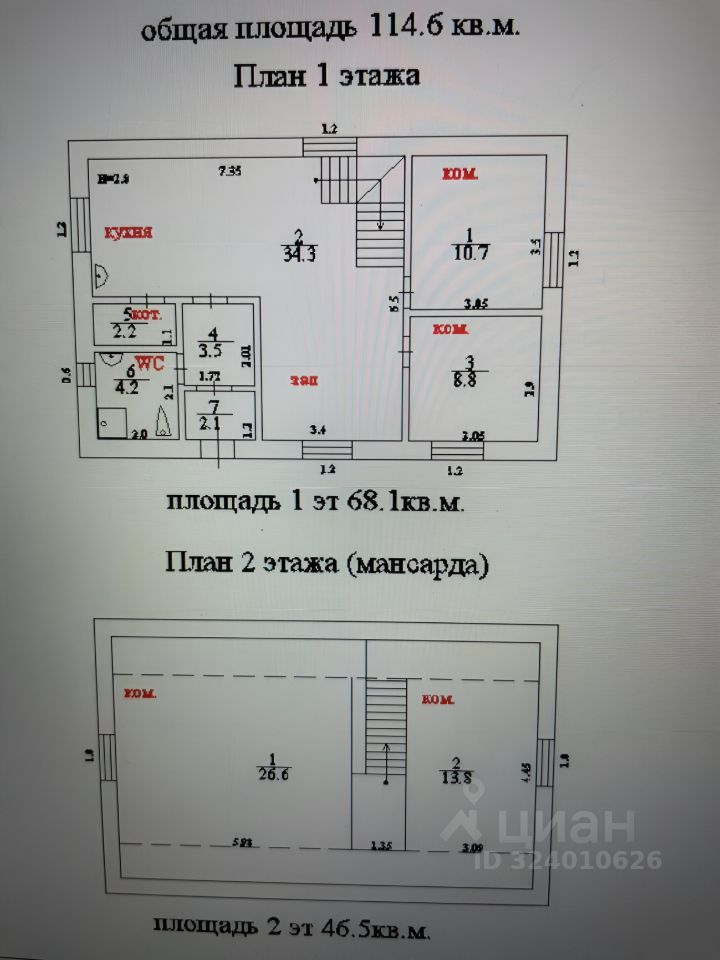 Дом под внутреннюю отделку. Общая площадь дома почти 115 кв.м. Два этажа, в том числе мансардный этаж. Высота потолков первого этажа 2,9 метра. На первом этаже: кухня-гостиная 34,3 кв.м, две спальни 10,7 и 8,8 кв.м, прихожая, санузел, котельная (бойлерная) с окном. На втором (мансардном этаже) свободная планировка, возможно обустройство еще двух спален 26,6 и 13,8 кв.м.