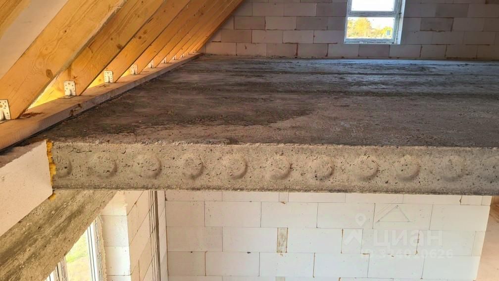 Материал стен - белорусский газобетонный блок 300 мм. Фундамент ж/бетонный ленточный. Потолочные перекрытия - новые ж/бетонные плиты, кровля двухскатная, покрыта кровельным металлом.