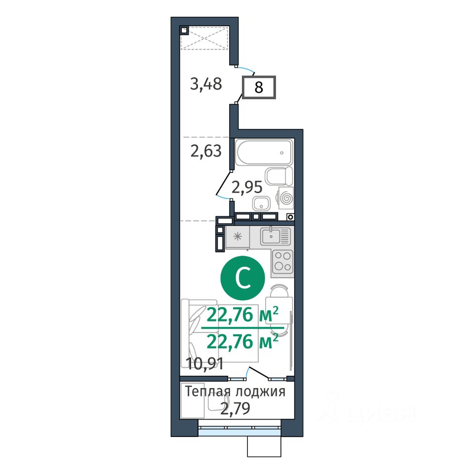 продам 1-к, Тюменская, гп 2.33 440 000 ₽