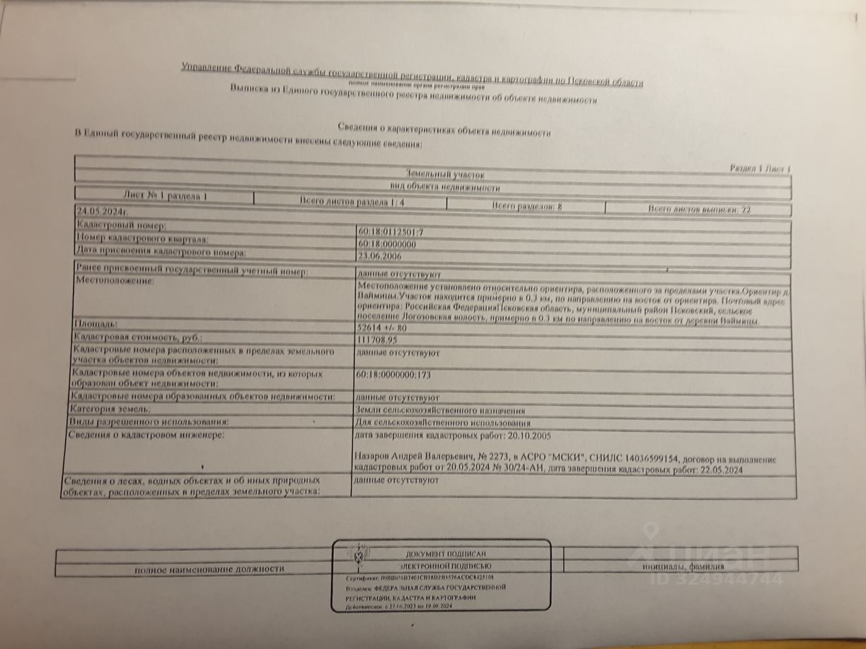 Продается земельный участок сельхозназначения с КН 60:18:0112501:7 площадью 5,26 га, 12 км от Пскова и 40 км от границы с Эстонией, район д. Ваймицы и Устье Логозовской волости Псковского р-на, 400 м до устья р. Великой у впадения в Псковское озеро. Рядом газ, электрическая линия, подъезд - асфальт. Цена - 400 000 р. Для заинтересованных лиц: имеется к продаже и соседний участок с КН 60:18:0112501:8 площадью 6,2 га. Цена за два участка - 750 000 р.