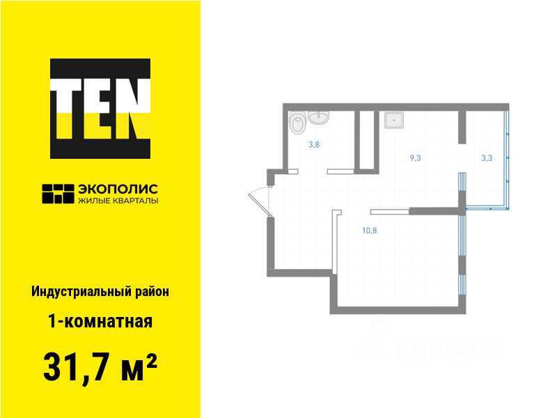 Квартира в ЖК ''Экополис'' в Индустриальном районе от застройщика TEN девелопмент! Ключи в 3 квартале 2026 года.