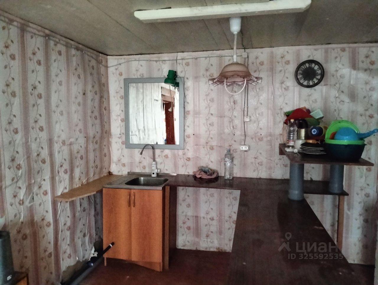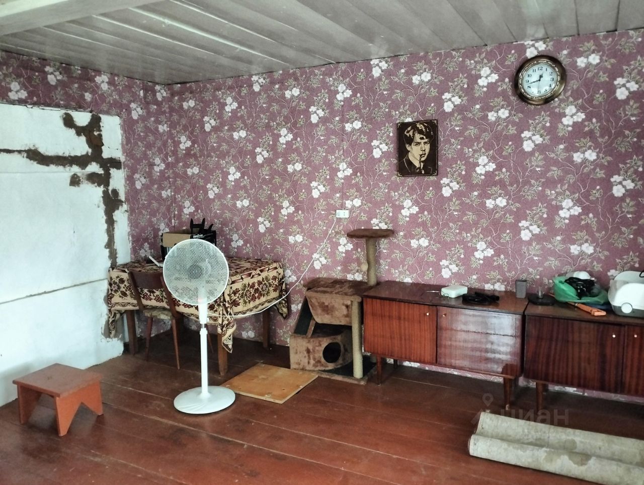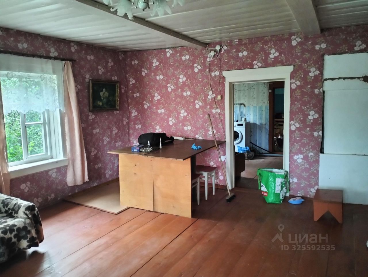 Продается бревенчатый дом 45 кв.м. (большая комната + просторная кухня), также имеется веранда-пристройка. В доме печь (требует ремонта), стиральная машина-автомат, насосная станция (вода от соседского колодца за символическую плату), проточный водонагреватель, что вкупе дает эффект городских удобств. Стоит антенна-усилитель мобильной связи и интернета. Крыша требует небольшого ремонта. Есть баня (больше летний вариант, т.к. недостаточно утеплена), в нее проведена вода от насосной станции и тоже есть водонагреватель. На территории хозпостройки в стадии сноса за ненадобностью. Биотуалет в кладовке на веранде (уличный снесен). В 70-ти метрах от дома есть колонка. Площадь участка 15 соток, есть пара яблонь. Плюс 15 соток доп участок, не оформленный.