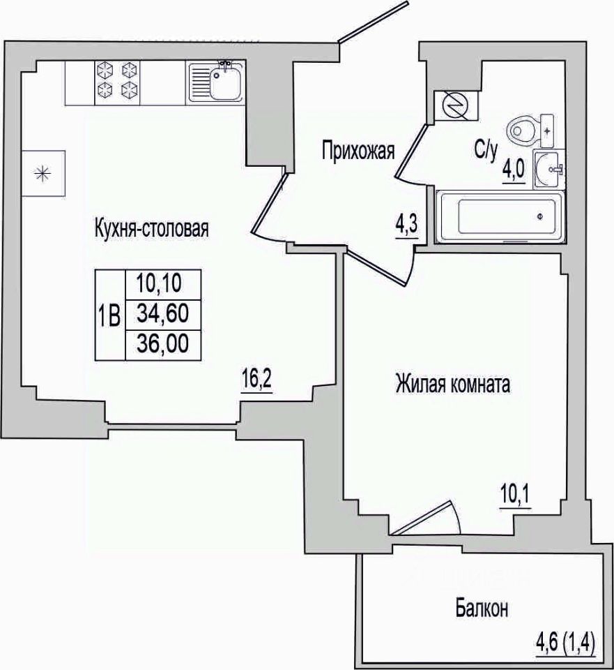 Общая площадь36 м2