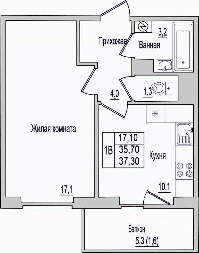 Общая площадь37,3 м2