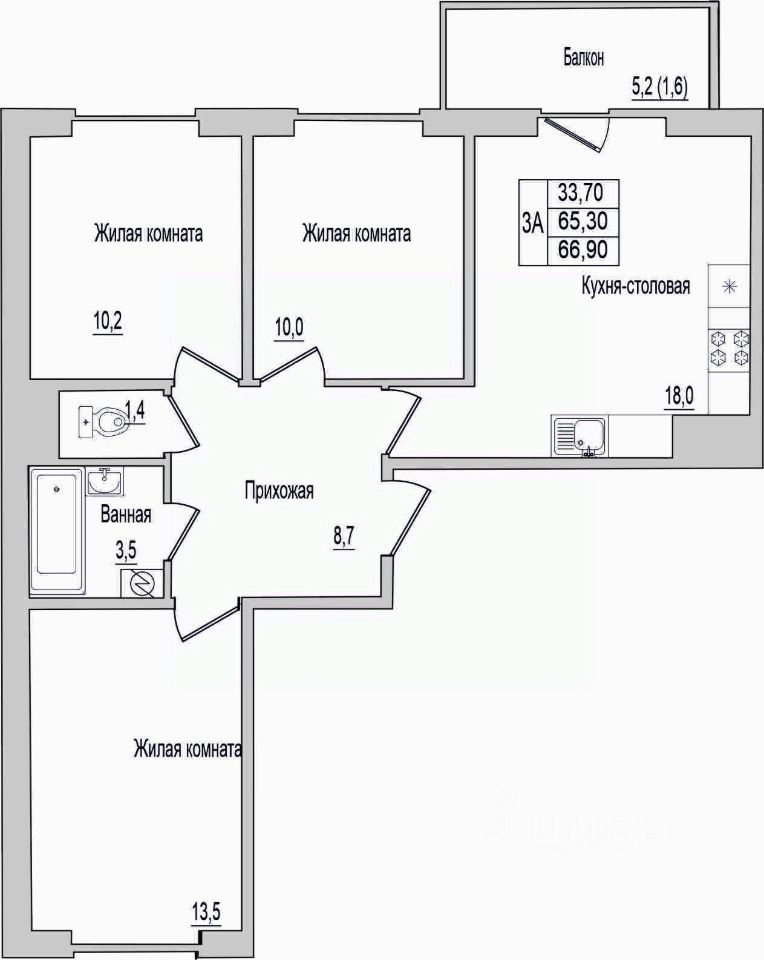 Общая площадь66,9 м2