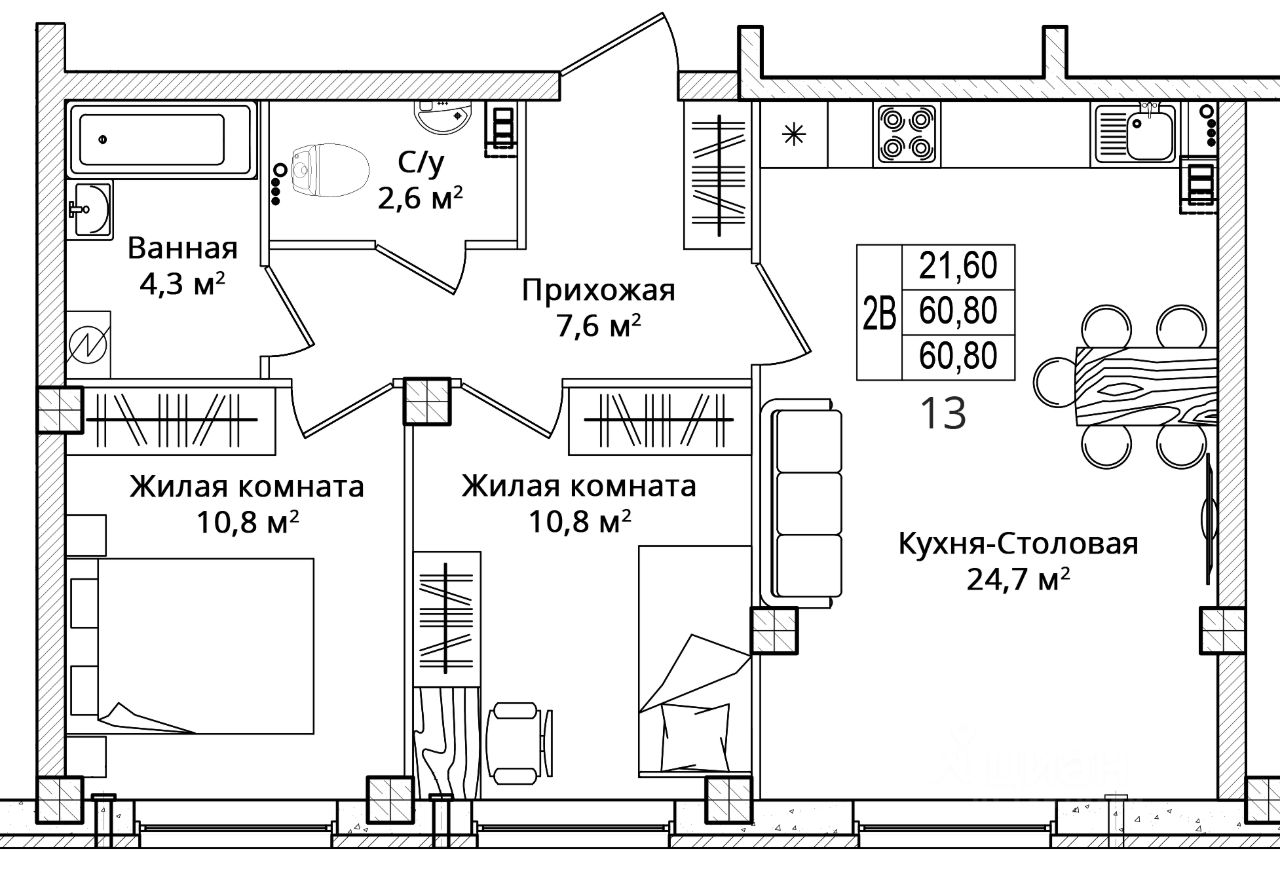 Общая площадь60,8 м2