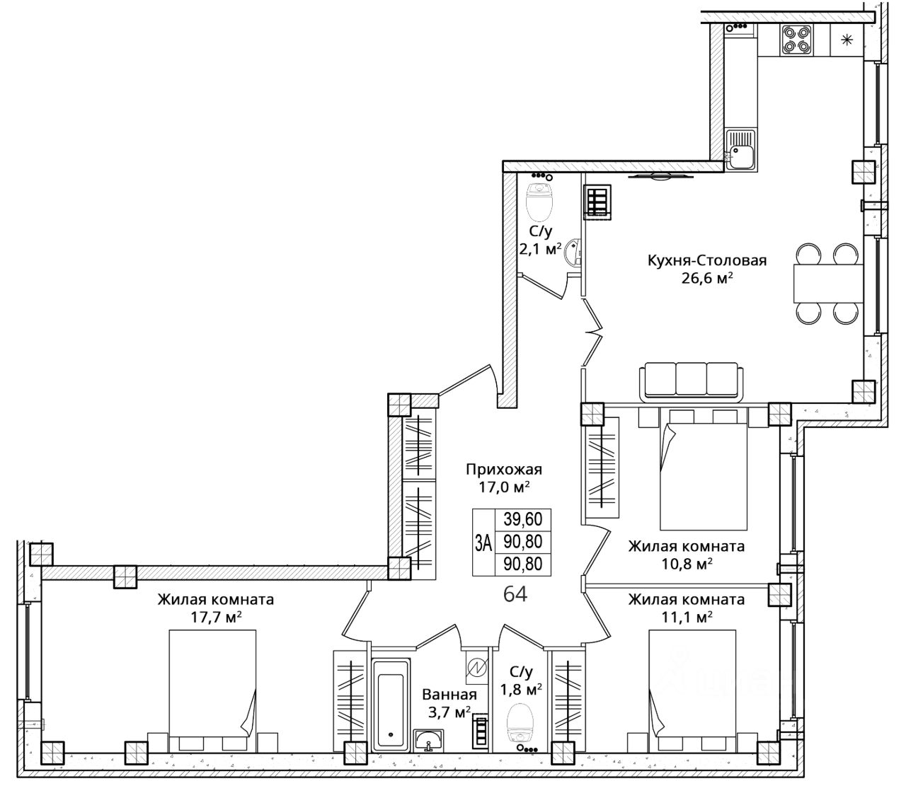 Общая площадь90,8 м2