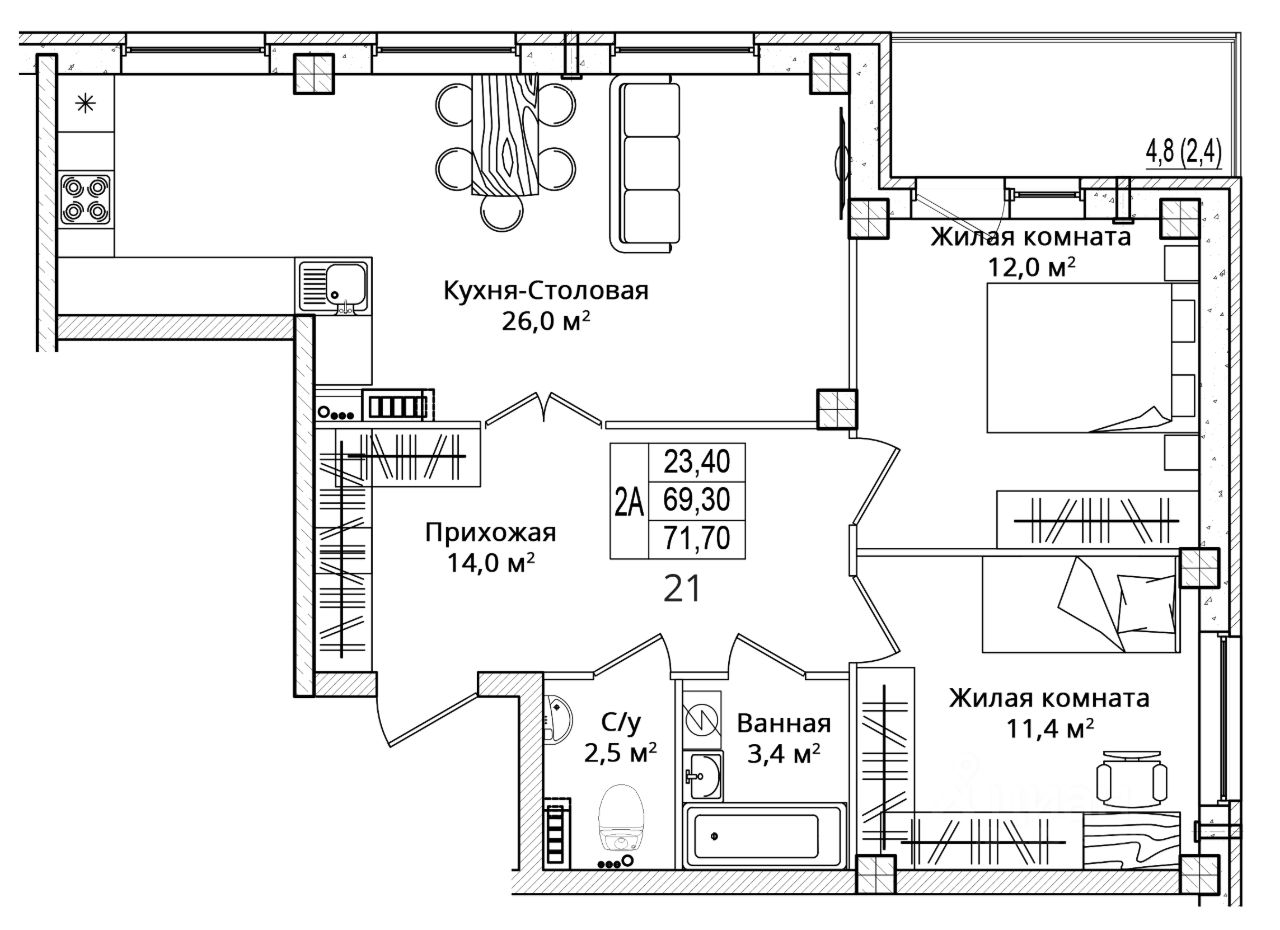 Общая площадь71,7 м2