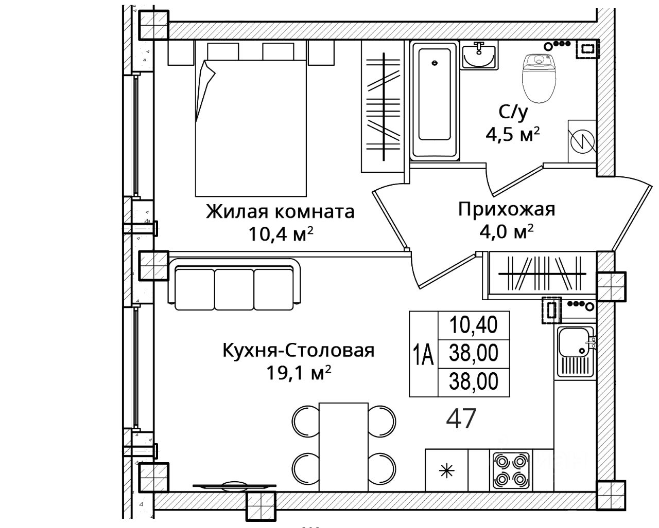 Общая площадь38 м2