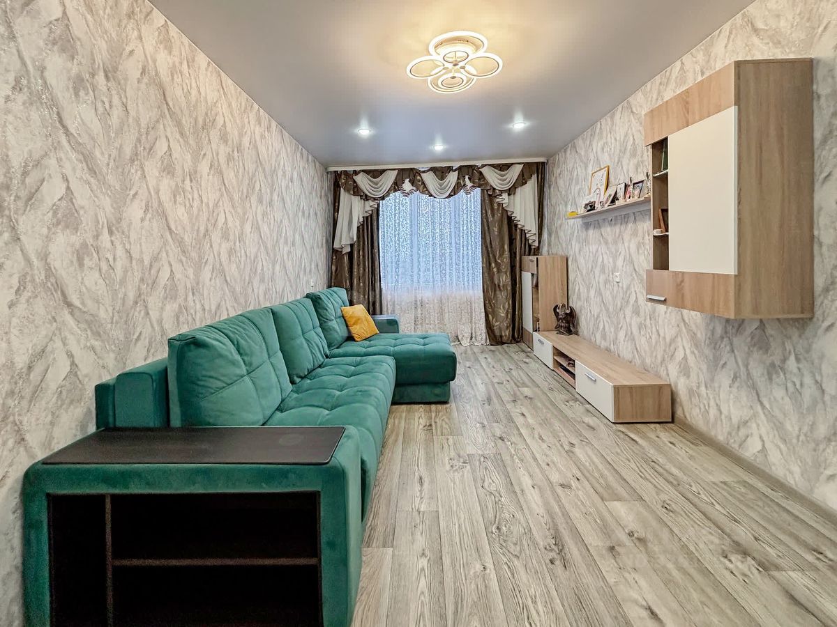 Продаётся уютная двухкомнатная квартира с современным ремонтом. Общая площадь квартиры 53м2, кухня 8.7м2, раздельные комнаты площадью (10.9м2 спальная комната) и (17.2м2 гостиная). Квартира в хорошем жилом состоянии, установлена металлическая входная дверь, во всей квартире натяжные потолки, пластиковые окна, балкон застеклен и утеплен, установлены новые батареи, кухонная зона с встроенным гарнитуром (на полу кафель), раздельный сан узел (кафель), установлены счетчики на воду и газ. Центральное отопление, центральная горячая вода + установлен бойлер. Вся инфраструктура в шаговой доступности школа, детский садик, продуктовые магазины, оzоn, Wildbеrriеs Регулярное автобусное сообщение. До города 10 км = 13 минут езды. Рассмотрим любую форму оплаты. Дополнительная информация по телефону. Звоните!